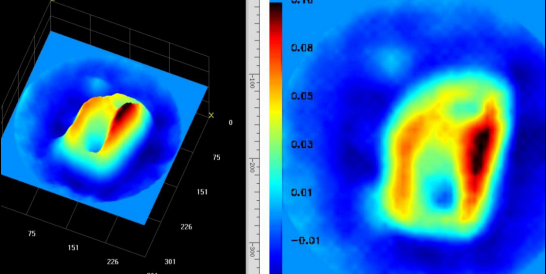 Рис.2. Реконструкция квадратного волнового фронта из четырехволновой межполовой интерферограммы