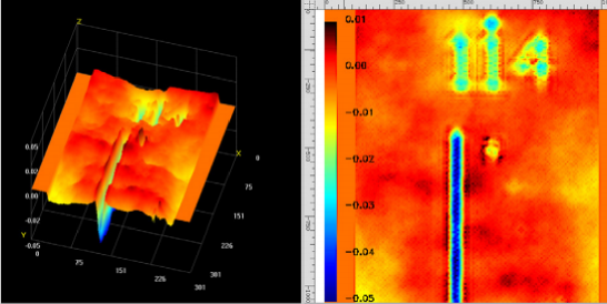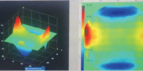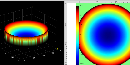 Рис.2. Реконструкция квадратного волнового фронта из четырехволновой межполовой интерферограммы